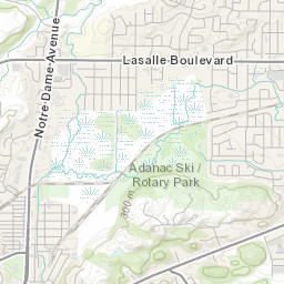 Explore the ski runs and pistes around Adanac Ski Hill. Toggle the ski piste overlay using the layer control.