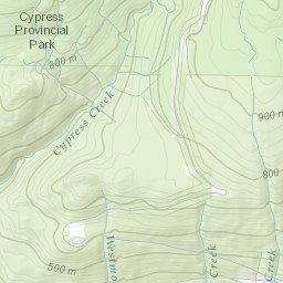 Explore the ski runs and pistes around Cypress Mountain. Toggle the ski piste overlay using the layer control.