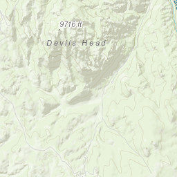 Explore the ski runs and pistes around Devil's Head. Toggle the ski piste overlay using the layer control.