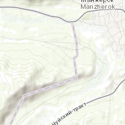 Explore the ski runs and pistes around Manzherok. Toggle the ski piste overlay using the layer control.
