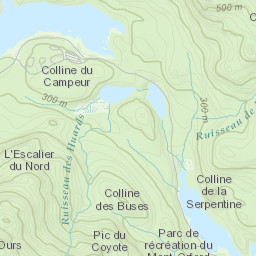 Explore the ski runs and pistes around Mont Orford. Toggle the ski piste overlay using the layer control.