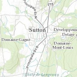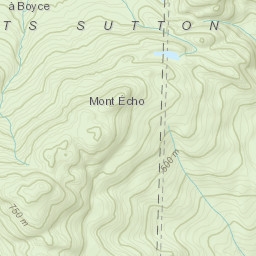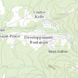 Explore the ski runs and pistes around Mont Sutton. Toggle the ski piste overlay using the layer control.