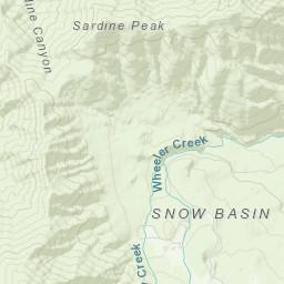 Explore the ski runs and pistes around Snowbasin. Toggle the ski piste overlay using the layer control.