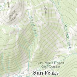 Explore the ski runs and pistes around Sun Peaks. Toggle the ski piste overlay using the layer control.