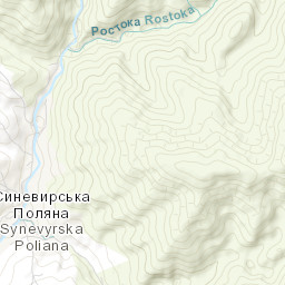 Explore the ski runs and pistes around Synevir. Toggle the ski piste overlay using the layer control.